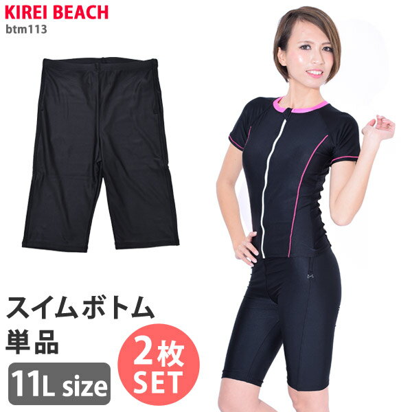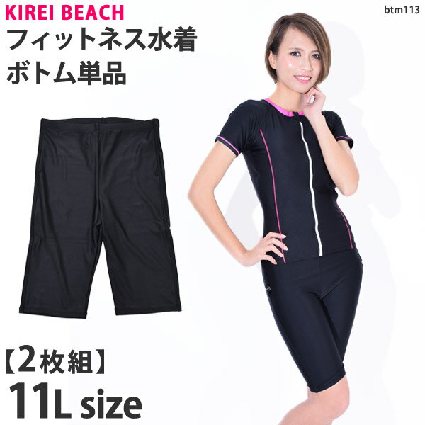 スイムボトム 単品 2枚組 フィットネス水着 レディース btm113(KB113ボトム) ハイウエスト ボトム 水泳 スイミング 上下別 ハーフパンツ ショートパンツ 水着 女性 Lサイズ KIREI BEACH 11L/11号 【ゆうパケット送料無料】
